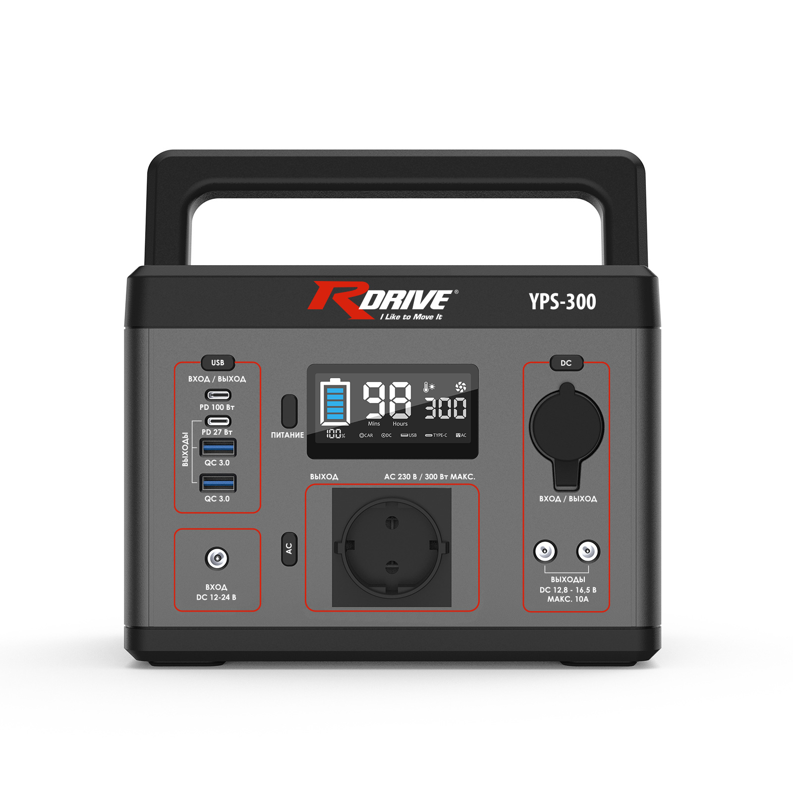 * Вход Type-C и режим мерцания только для YPS-300 ** Режим "UPS" только для YPS-600U Сферы применения: кемпинг, походы, дома на колесах, ремонт и строительство, резервное питание бытовых электроприборов. Портативная литиевая электростанция RDrive ELECTRO Reserve YPS-300